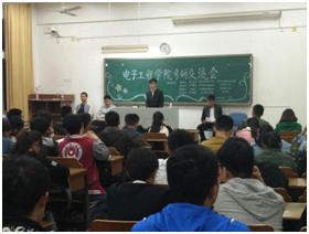 主持人宣布活动开始,并依次介绍了现场的嘉宾及活动流程,接着由今年考研金榜题名的同学介绍他们的考研经历和学习经验。他们普遍认为:“首先要整体把握近几年考研的趋势,然后再处理好细节,各个击破,真正做到考研方向不选错,考验知识点不漏过。”整个交流会在轻松的氛围下进行着,“考研之星”们用幽默风趣的语言,为学弟学妹考研备考进行了指导。他们认真的态度赢得老师们的高度赞赏与同学们的阵阵掌声。