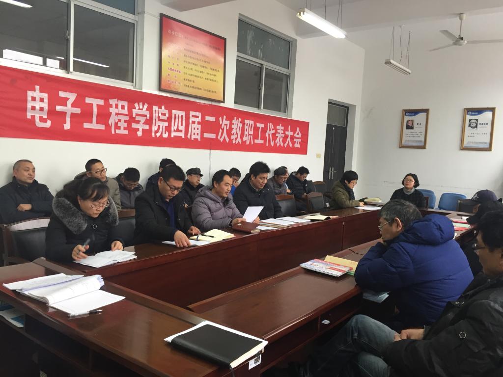 1月3日下午,bv1946伟德官网四届二次教代会在电子楼212会议室举行,公司党政领导、党代会代表、教代会代表、全体辅导员、办公室人员、校工会代表出席了会议。会议由公司党委书记陶建兴主持。
