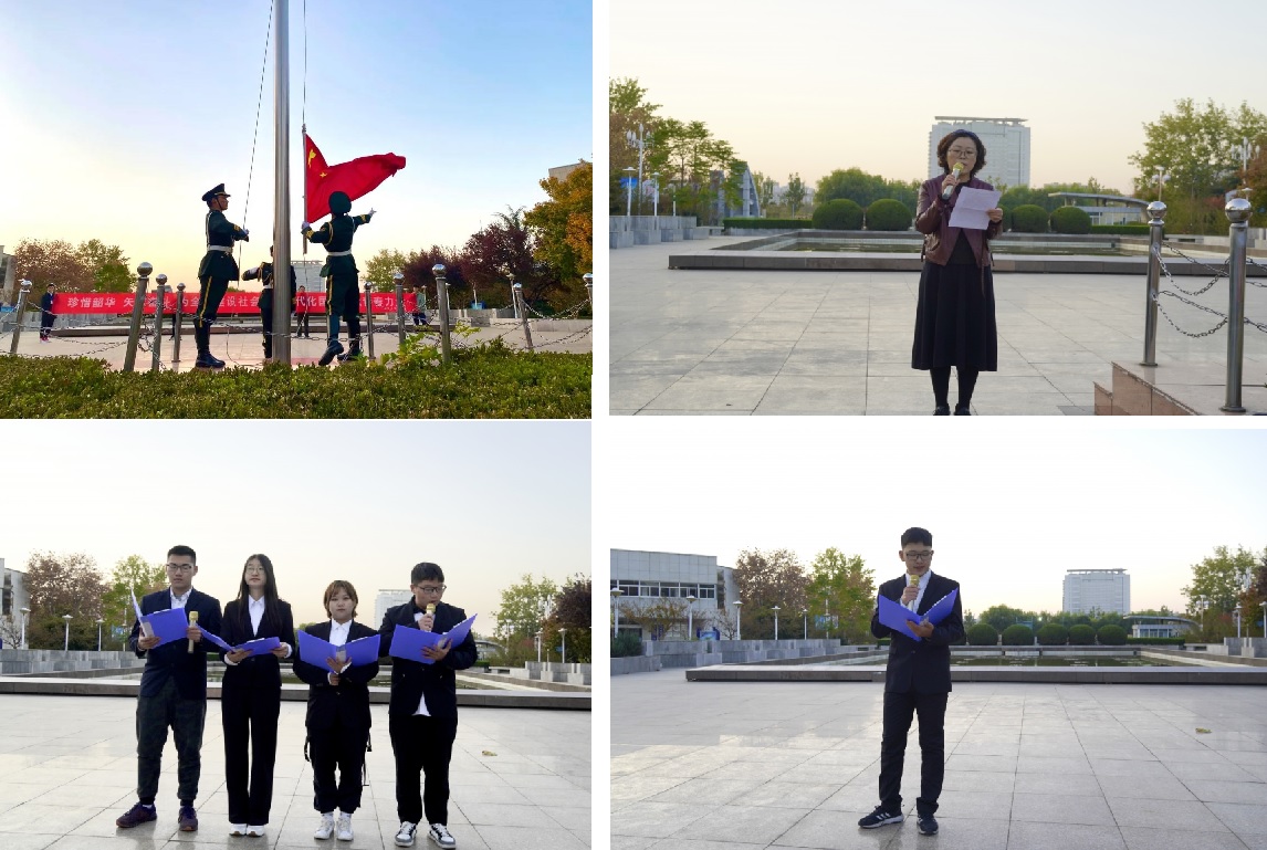 崔颖、杨金保、姚舜予、杨金宇等四名同学带来《韶华之歌》朗诵,“在实现中华民族伟大复兴的征程上,我们一定要牢记党的教诲,热爱伟大祖国,不负韶华,矢志奋斗”“努力学习、敢于担当、笑对挫折,勇做走在新时代前列的奋进者、开拓者、奉献者。”一句句铿锵有力、饱含深情的朗诵点燃了在场青年学子的激情与斗志。国家奖学金获得者田俊龙同学作为员工代表发言,他号召在场学子要弘扬爱国主义精神,坚定理想信念,投身刻苦学习,以实际行动彰显新时代青年的责任与担当。