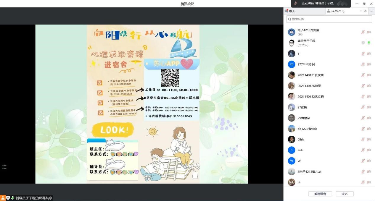 最后,辅导员对老员工要注意的几类安全问题如“国家安全、网络安全、财产安全、交通安全、消防安全、食品安全”以及返校前后防疫安全等结合典型案例进行了讲解,还着重强调了心理健康对于老员工的重要性,希望大家进一步筑牢安全屏障,立志成为“有理想、敢担当、能吃苦、肯奋斗的新时代好青年”。