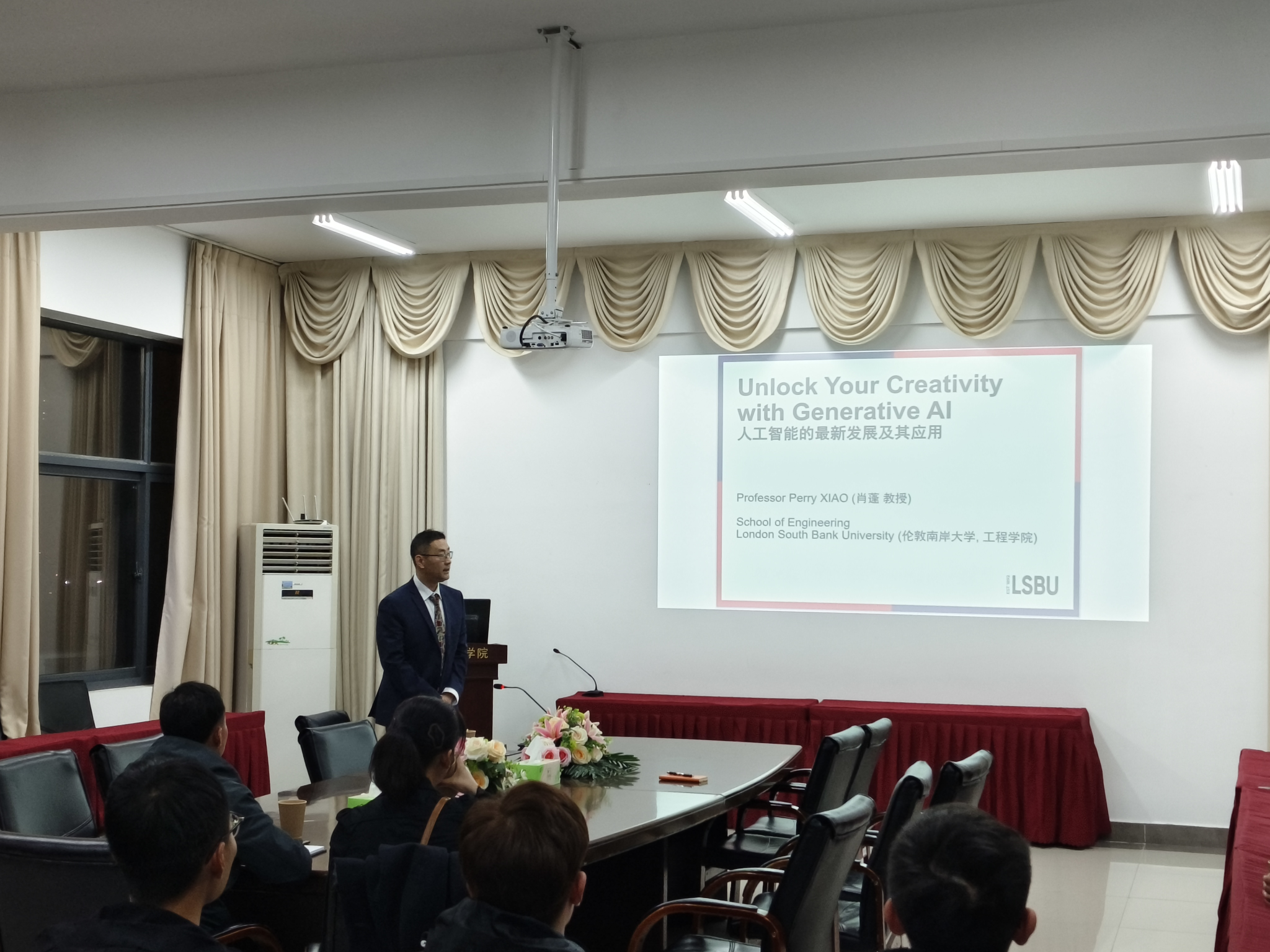 来自英国伦敦南岸大学的知名学者肖蓬教授在一场学术报告会上,以《利用生成式人工智能释放你的创造力》为主题,分享了他对于人工智能与创造力结合的最新研究成果和深刻见解。这场报告会汇聚了bv1946伟德官网师生、当地企业专家以及人工智能领域的爱好者,共同探讨了人工智能如何助力创造力的释放,引领未来发展方向。