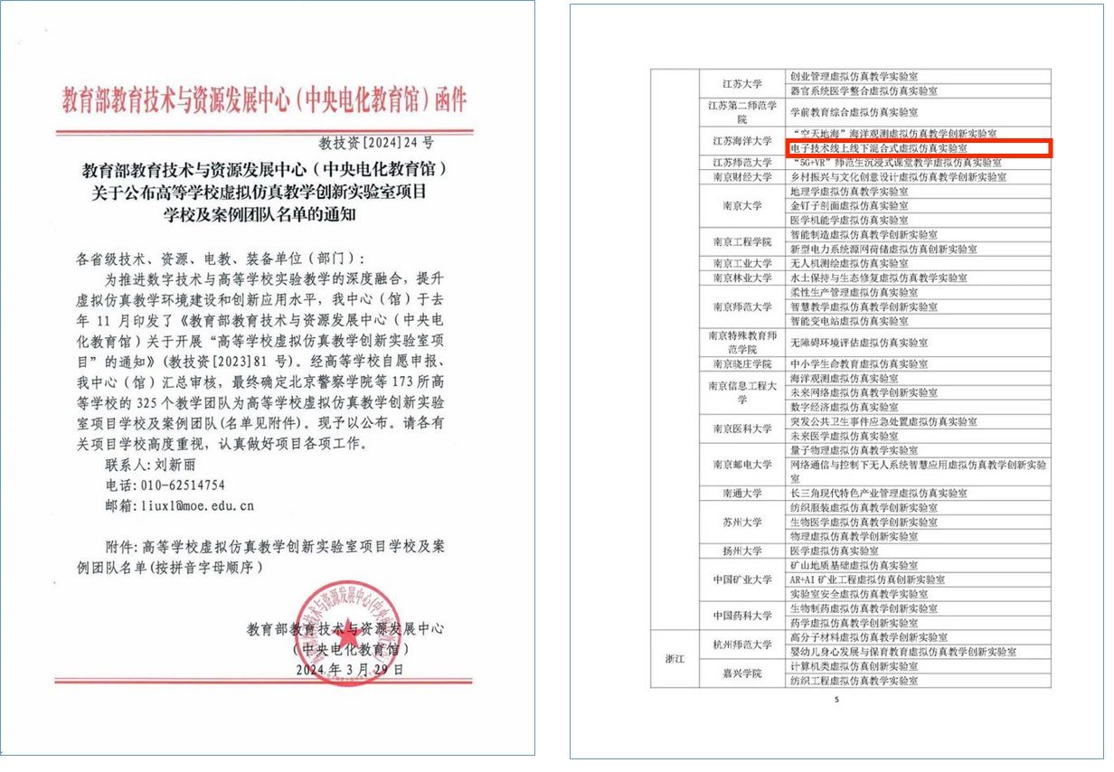 近日,教育部教育技术与资源发展中心发布《关于公布高等公司虚拟仿真教学创新实验室项目公司及案例团队名单的通知》(教技资〔2024〕24号),公司申报的电子技术线上线下混合式虚拟仿真实验室入选高等公司虚拟仿真教学创新实验室项目及案例团队。