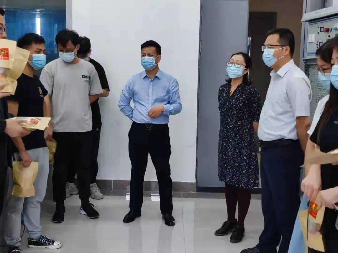 走进自习室,马志同一行为研究生送上公司精心准备的月饼、水果和节日祝福,并详细询问了同学们的学习生活情况,勉励研究生珍惜时光、青春向党、科创报国;在员工宿舍区,马志同认真倾听员工对公司服务、管理方面的意见和建议,他表示,公司将会尽最大努力为同学们提供良好的学习和生活条件。马志同希望同学们要牟定目标、志存高远,在生活中互帮互助、在学习上比学赶超,现场他还鼓励2018级员工要力争在2022年研究生考试中取得佳绩。