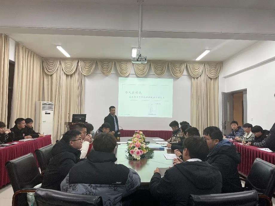 2021年12月8日晚,bv1946伟德官网第十四期“青马工程”培训班第一讲“主要员工干部扎根班级的工作艺术”主题讲座在电子楼314举行。公司党委书记马志同主讲,辅导员韩申、“青马学员”70余人参加培训。