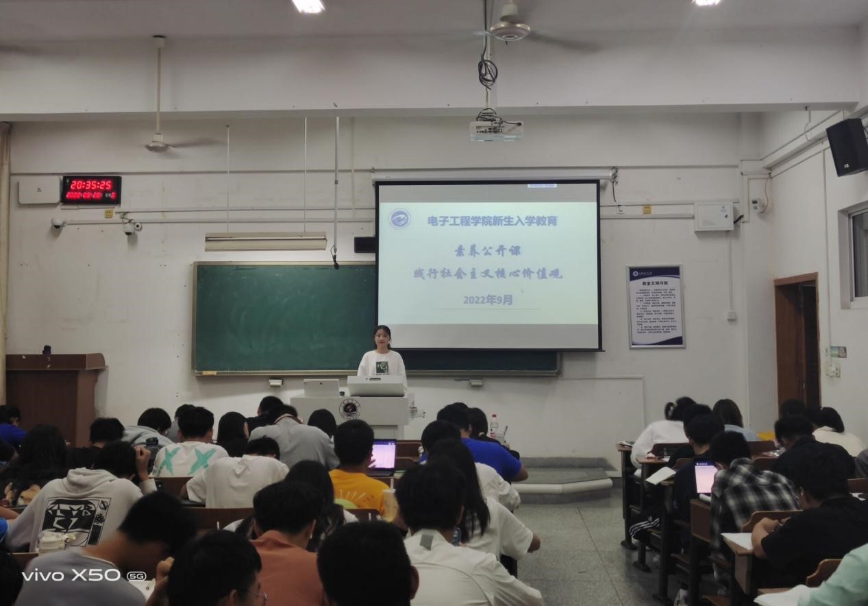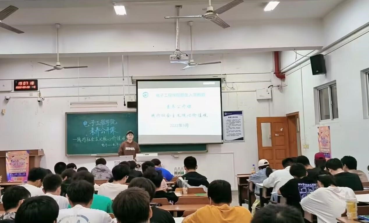 为引导2022级新生坚定理想信念,将爱国、敬业、诚信、友善更好地付诸于行动,bv1946伟德官网于9月27日晚上分专业开展了新生入学教育之“践行社会主义核心价值观”素养公开课,各专业助班担任主讲人,bv1946伟德官网全体大一新生参与。
