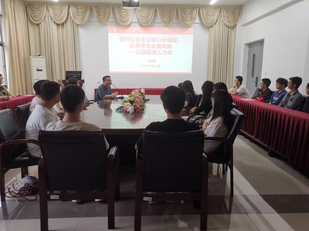 新时代高校员工资助工作从资助对象的申报、评选、公示、资助金的发放等各个环节,都需要遵循公开、公平、公正的原则,全程透明、规范地完成,这恰恰体现了民主、公正、平等、法治的力量,和社会主义核心价值观的核心理念相契合。5月23日bv1946伟德官网穆成银老师在电子楼314以“践行社会主义核心价值观,引导员工全面发展---以资助育人为例”开展主题讲座,各班级生活委员参加。