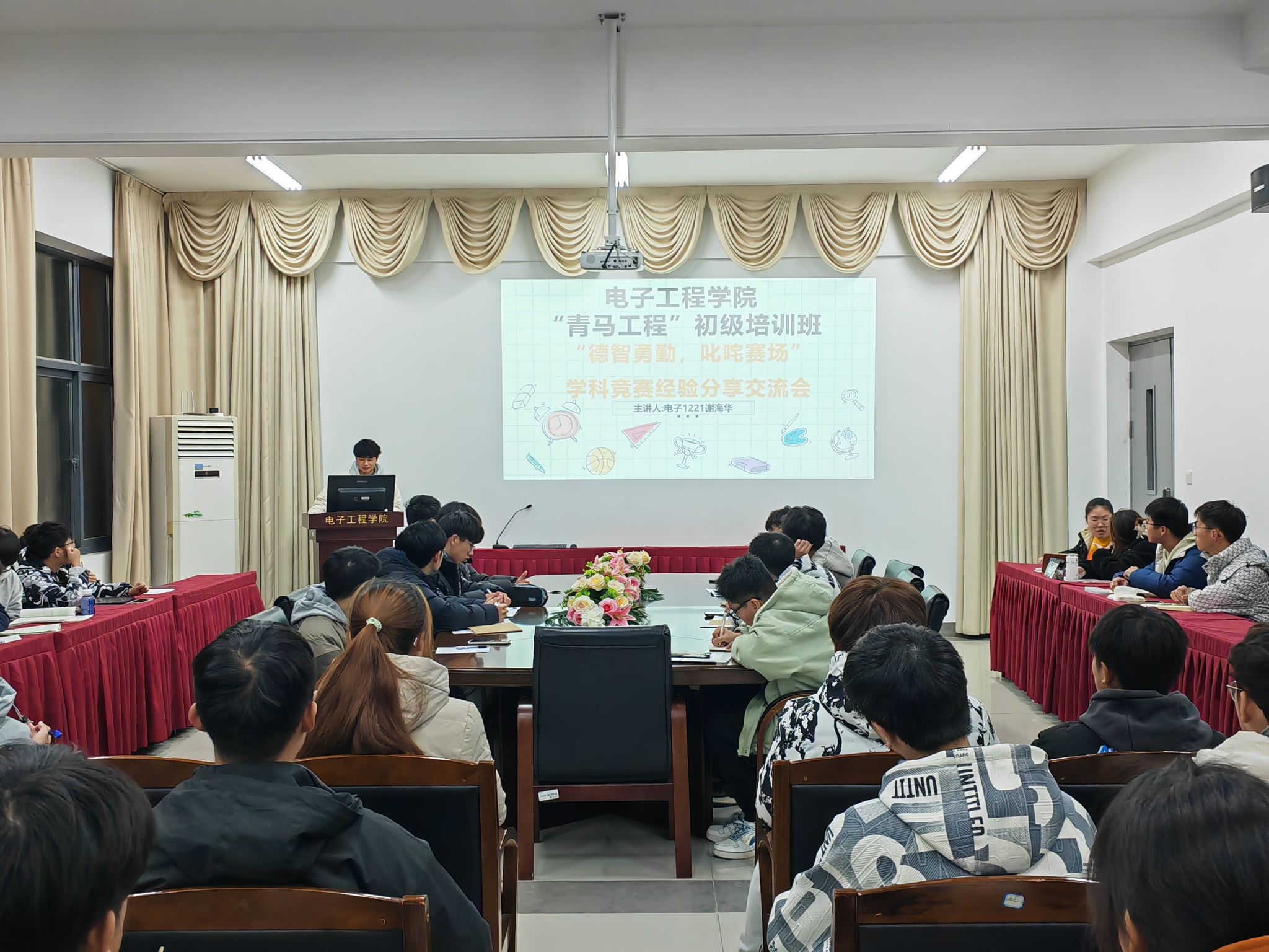 电子1221班谢海华作“德智勇勤,叱咤赛场”经验分享,从公司最新的学科竞赛认定名单、公司竞赛、校级其他比赛、参赛注意点四个方面,带领现场同学了解各类竞赛;电气1212班张海鹏作“学以致用,赛出未来”经验分享,结合自身参赛经历,为现场同学阐释参赛意义、梳理竞赛类别、分享备赛干货,分不同年级段进行针对性指导。
