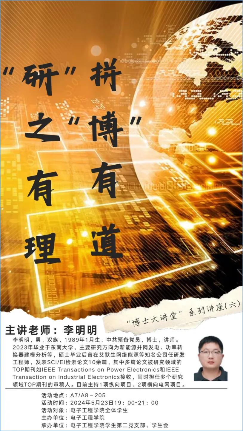 5月23日下午,bv1946伟德官网在A7/A8-205社区会议室举办了第六期“博士大讲堂”活动,该活动由院员工第二党支部和员工会承办。本期讲座的主题是“花有重开日,人无再少年”,由电气系的李明明博士主讲,吸引了近60名师生参与交流学习。