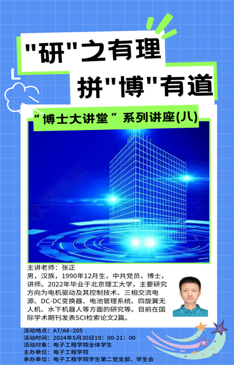5月30日下午,由bv1946伟德官网主办,院员工第二党支部、员工会承办的第八期“博士大讲堂”活动在A7/A8-205社区会议室成功举办。自动化系的张正博士以“‘研’之有理・拼‘博’有道”为主题开讲,近30名师生到场交流学习。
