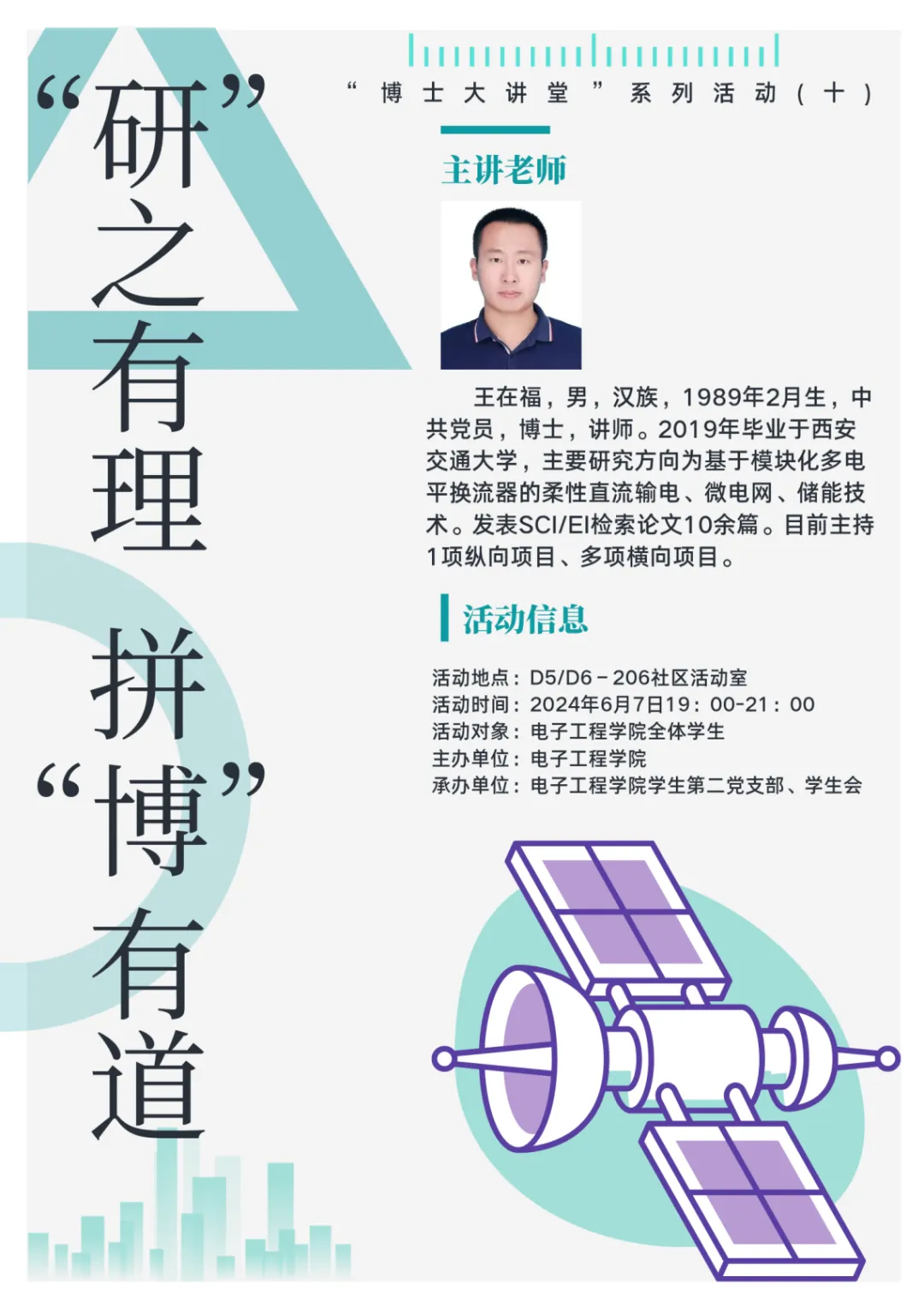 6月7日下午,由bv1946伟德官网主办,院员工第二党支部、员工会承办的第十期“博士大讲堂”活动在D5/D6-206社区活动室成功举办。电气系的王在福博士以“青春没有什么不可能”为主题开讲,近20名师生到场交流学习。