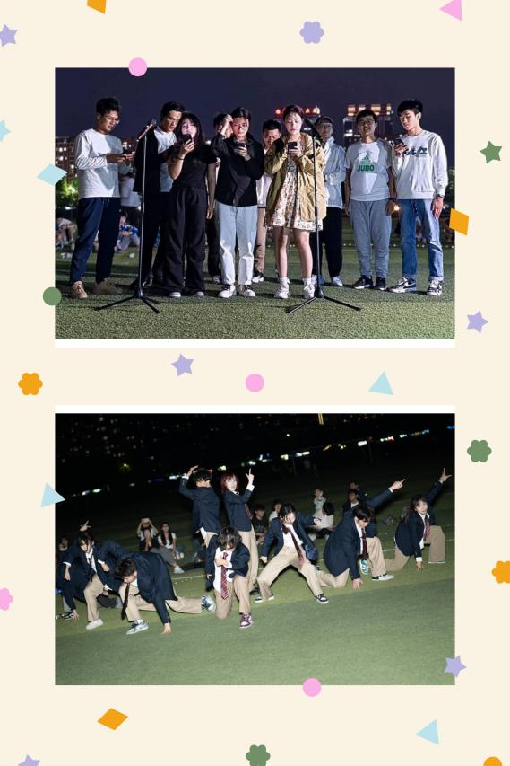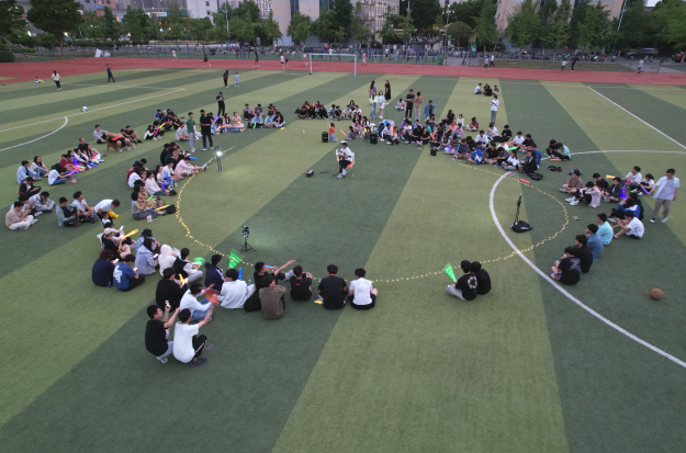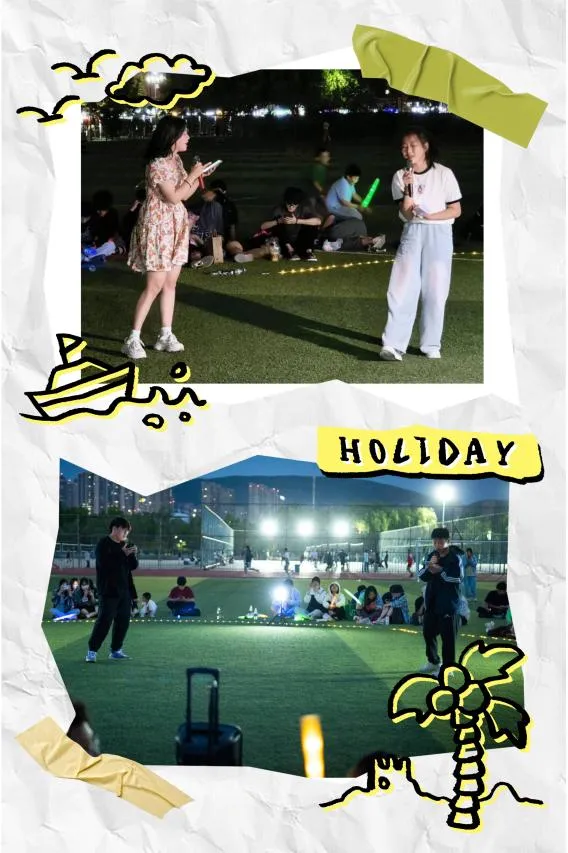 随着夜幕的降临,操场草坪上的灯光逐渐亮起,歌会现场布置得温馨而富有青春气息。大家席地而坐,齐聚一堂,共同欣赏着这场精彩的歌会。夏天的风,轻柔柔的,似香甜蜜露,依恋不舍。一首《夏天的风》拉开了歌会的帷幕。吉他弹唱《最好的老爸》,感恩祝福辛苦的父亲;《有点甜》歌曲旋律悠扬动听,让现场的观众们感受到了青春的美好与甜蜜;《海阔天空》将歌会氛围推向了高潮,全场观众纷纷跟唱,致敬梦想。此外,《东西》《在你的身边》《红尘客栈》《泡沫》《凤凰传奇串烧》《小幸运》《像风一样》等歌曲各具匠心,合唱、独唱、吉他伴奏形式多样,歌声或婉转、或轻柔、或铿锵、或昂扬;5e4i组合的舞蹈《Firework》节奏感十足,同学们围坐在操场上,挥动着手中的荧光棒。每一个节目都充满了青春的活力和大家对未来的期待。现场同学被表演深深吸引,纷纷拿起手机记录下这难忘的时刻。最后,随着阳光合唱团《最初的梦想》的落幕,本次草坪歌会在观众的热烈掌声中圆满结束。