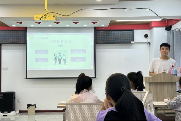 志愿者通过短片《笨拙的螃蟹》《林》引入主题,并借助课件,引导同学们意识到每人都有自己的闪光点,需要一双善于发现亮点的眼睛。通过“趣味连连看”小游戏,引导大家发掘自身和他人身上的闪光点。