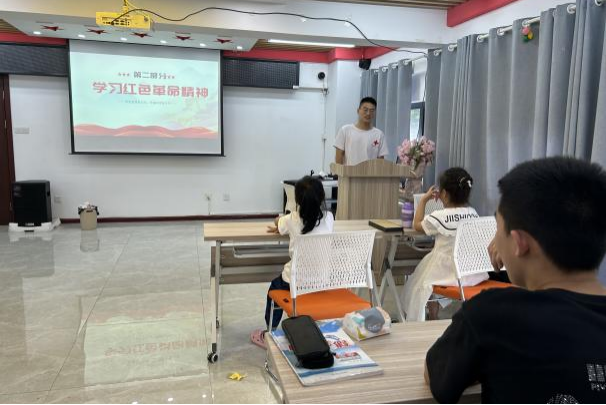志愿者带领同学们通过观看图文、视频,回顾爱国烈士的事迹,了解国家的发展历程和历史成就,体会先烈的伟岸精神,以及全国人民对祖国发展做出的努力,从而加强青少年的爱国主义教育。
