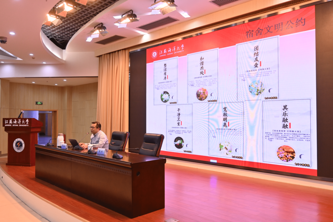 10月23日晚上,bv1946伟德官网在黄海厅开展2024级新生入学教育之宿舍工作宣讲,辅导员吴林松老师主持活动,辅导员穆成银为主讲老师、全体新生参加会议。