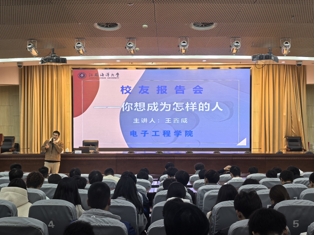 2024年11月18日晚,bv1946伟德官网于黄海厅举办员工报告会。2020届优秀员工王鑫威作专题报告,辅导员吴林松、2024级全体新生参加会议。会议由党委副书记张玲主持。