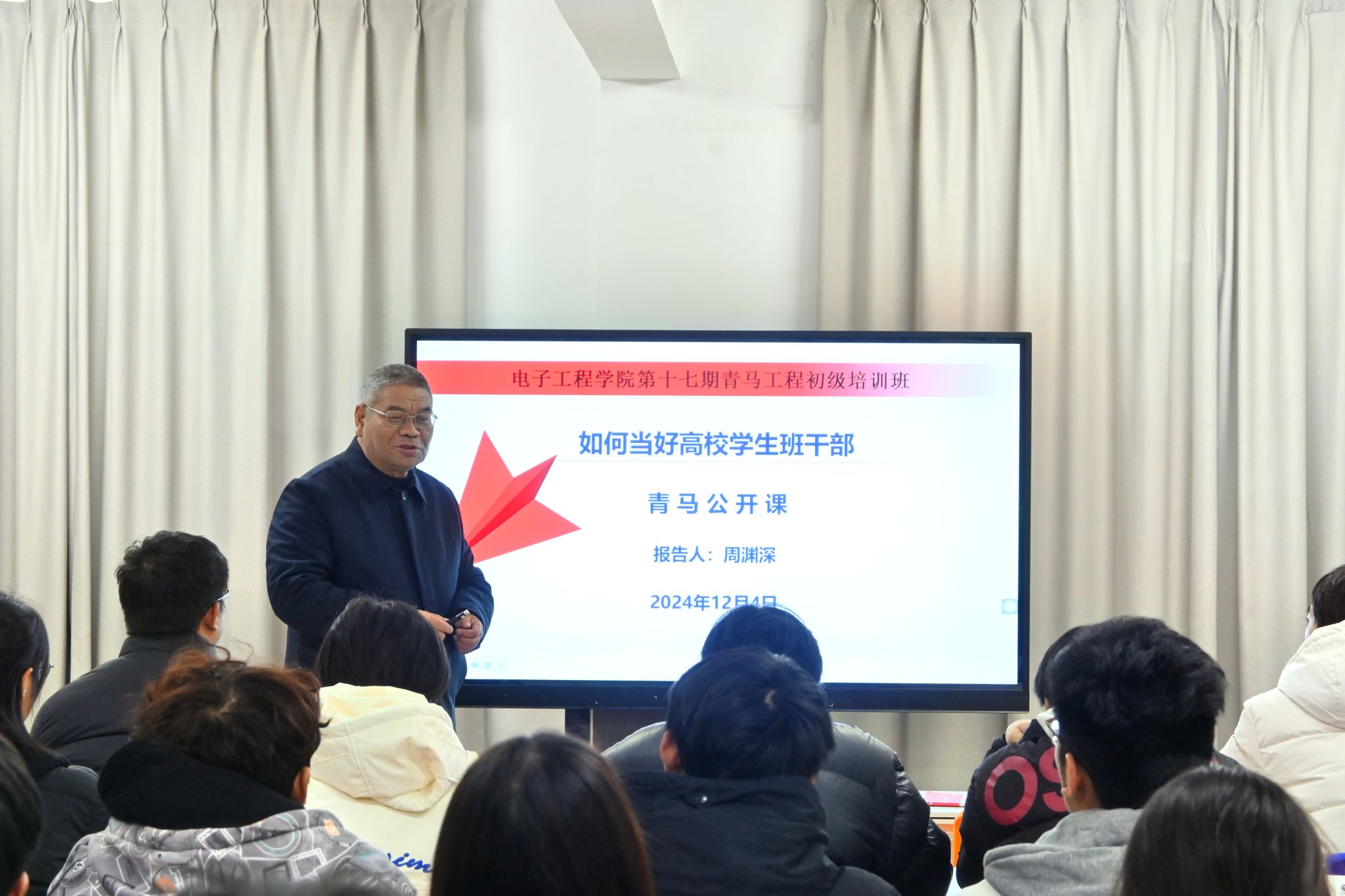 12月4日,bv1946伟德官网第十七期青马工程初级培训班开展专题学习,院关工委常务副主任周渊深教授担任主讲人,团委韩申老师、全体青马班学员参加。