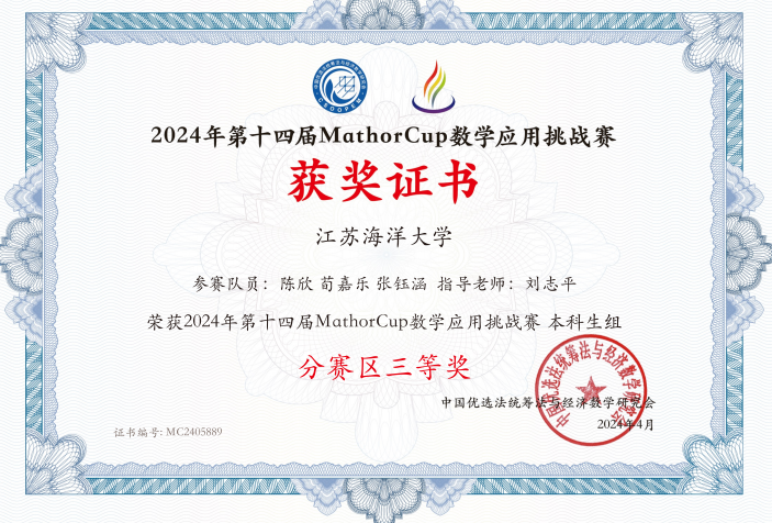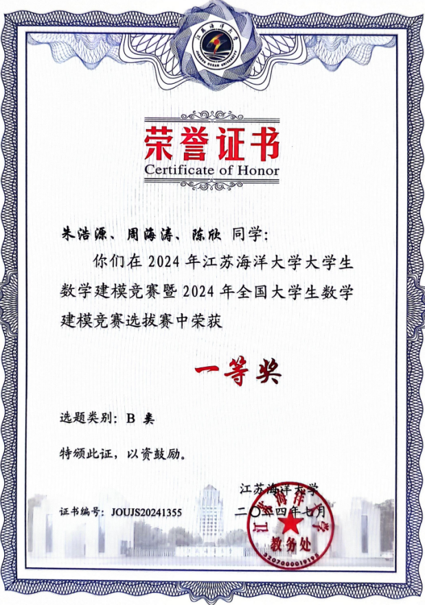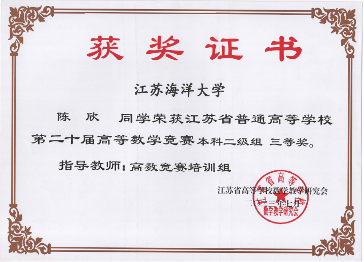 在做好基础学习的同时,陈欣在各类学科竞赛中同样表现活跃。大一时期,她热衷于学科竞赛,在省、校高数竞赛、英语竞赛以及各类征文比赛中均获得了优异的成绩;大二时期,她和两位伙伴组队参加数学建模竞赛,从校数学建模竞赛的一等奖,到数学挑战赛的三等奖,再到“数维杯”“华为杯”的锻炼,最后斩获全国老员工数学建模竞赛省一等奖,一路走来曲折蜿蜒,回首都是不放弃的身影。