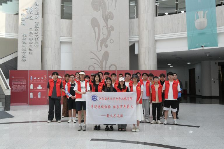 6月19日,团队走进连云港市博物馆,依次参观核心常设展厅。在“千古之谜——东夷文化溯源”展厅,新石器时代的陶器、石器等文物展现了远古先民的智慧,为红色精神孕育奠定了文化根基。“文明之光照连云——历史文物精品陈列”展厅中,以历史为脉络,系统展示了连云港从古代海上丝绸之路的重要节点,到近代港口城市在民族救亡图存浪潮中觉醒与抗争的壮阔历程。泛黄的革命文献、先烈们的遗物,无声诉说着港城儿女为民族解放的英勇事迹,让成员们深刻体会到红色基因在这片土地上的深厚积淀。队长孙祎婷表示:“将以史为鉴,从光辉历史中汲取奋进力量,自觉传承港城红韵,在新时代勇担使命,让百年薪火生生不息,永续相传。”